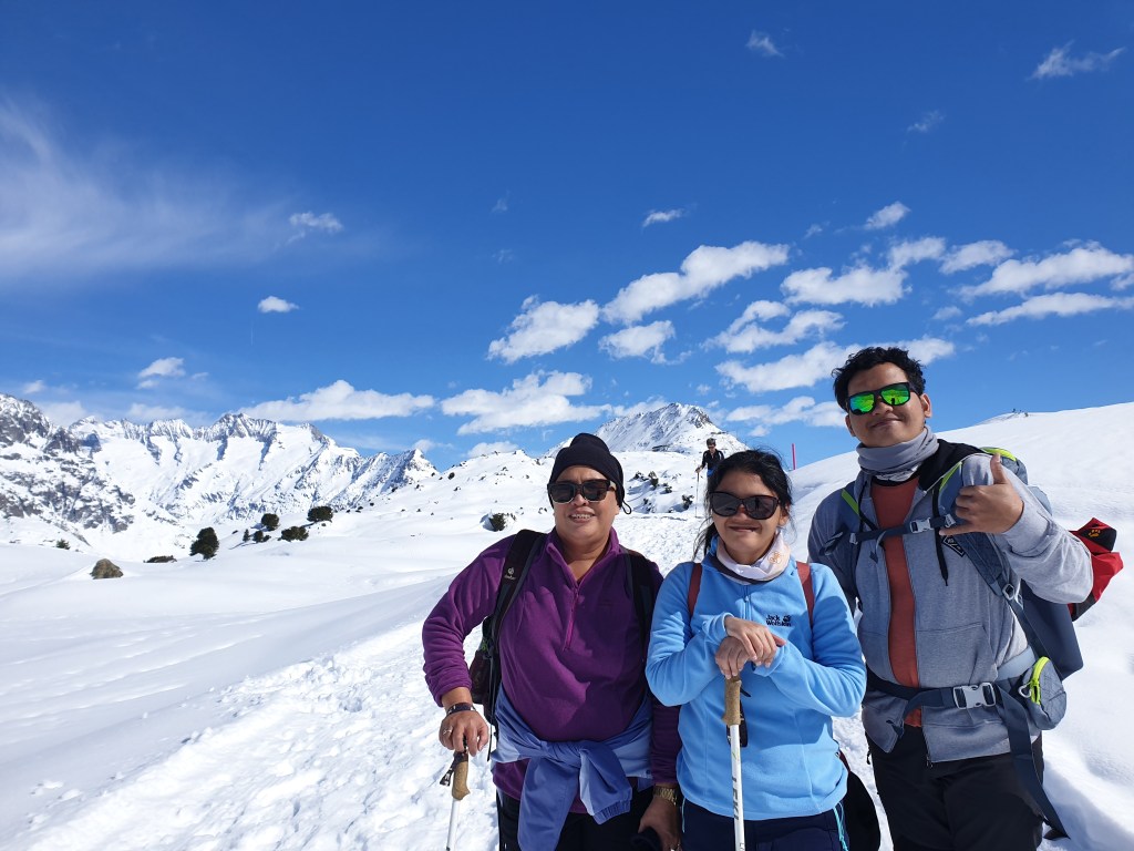 Ich bin in den Tropen aufgewachsen. Deswegen war der Winter für mich immer etwas Besonderes. Ich bin glücklich, in der Schweiz zu leben. Es ist nicht schwierig, in den Bergen beeindruckt zu sein. Man kann von verschiedene Aktivitäten draußen bei Wind und Wetter wählen. Aber würde es toll wenn die Sonne auch scheint.