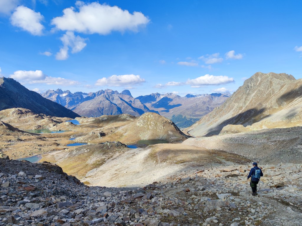 I will start with a week-long trip I did with my best friend on September 2024 at one of my favourite areas in Switzerland – Engadin. I found Kesch Trek on Wander We Go’s website but added a day to do the Joriseen lake hike and changed the last day’s hike. Spoiler: we didn’t manage to do see the lakes due to the unusual winter conditions in the area the week of our trip in September!